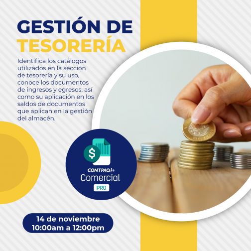Identifica los catalogos utilizados en la sección de tesorería y su uso, conoce los documentos de ingresos y egresos así como su aplicación en los saldos de documentos que aplican en la gestión del almacén.